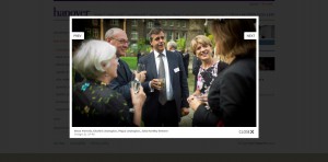 Photos (one above) show Parrott quaffing champagne next to Charles Lewington, who runs Hanover. Lewington has a long association with the Conservative Party. He was Press Secretary to ex-Conservative leader John Major in the 90s