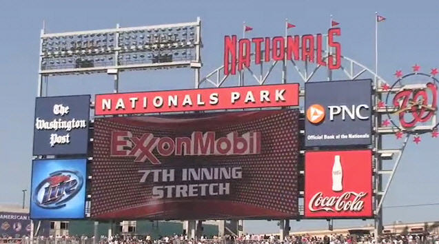 Exxon is a heavy hitter in Washington, and I’m not just talking about campaign contributions and lobbying. The world’s largest corporate carbon emitter has bought itself top billing at Washington’s new – supposedly green – baseball park.