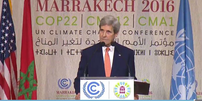 Outgoing US Secretary of State John Kerry used his speech at the UN COP climate talks in Marrakesh to lay down the gauntlet to incoming President Donald Trump on climate change.